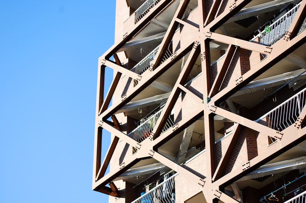 既存の建物に対して、補強をする工事です。弊社では、小学校やマンション、ビルなどに対応しています。日本では地震が頻繁に起きるため、被害を可能な限り少なくするために強度を高めていきます。